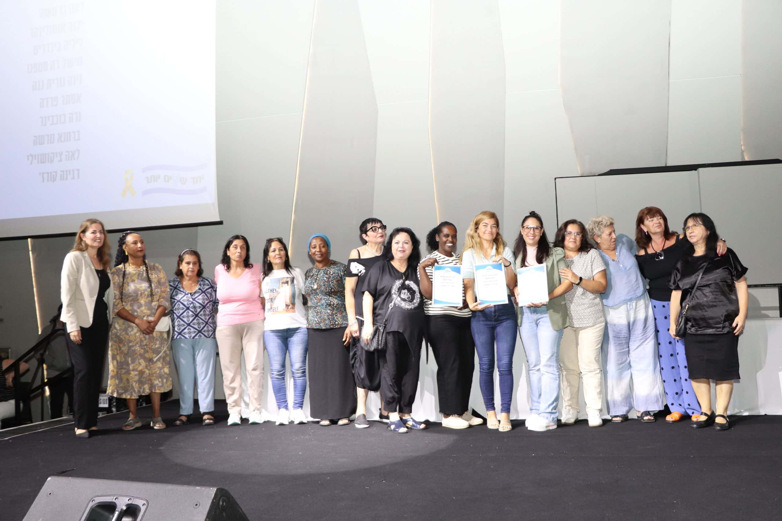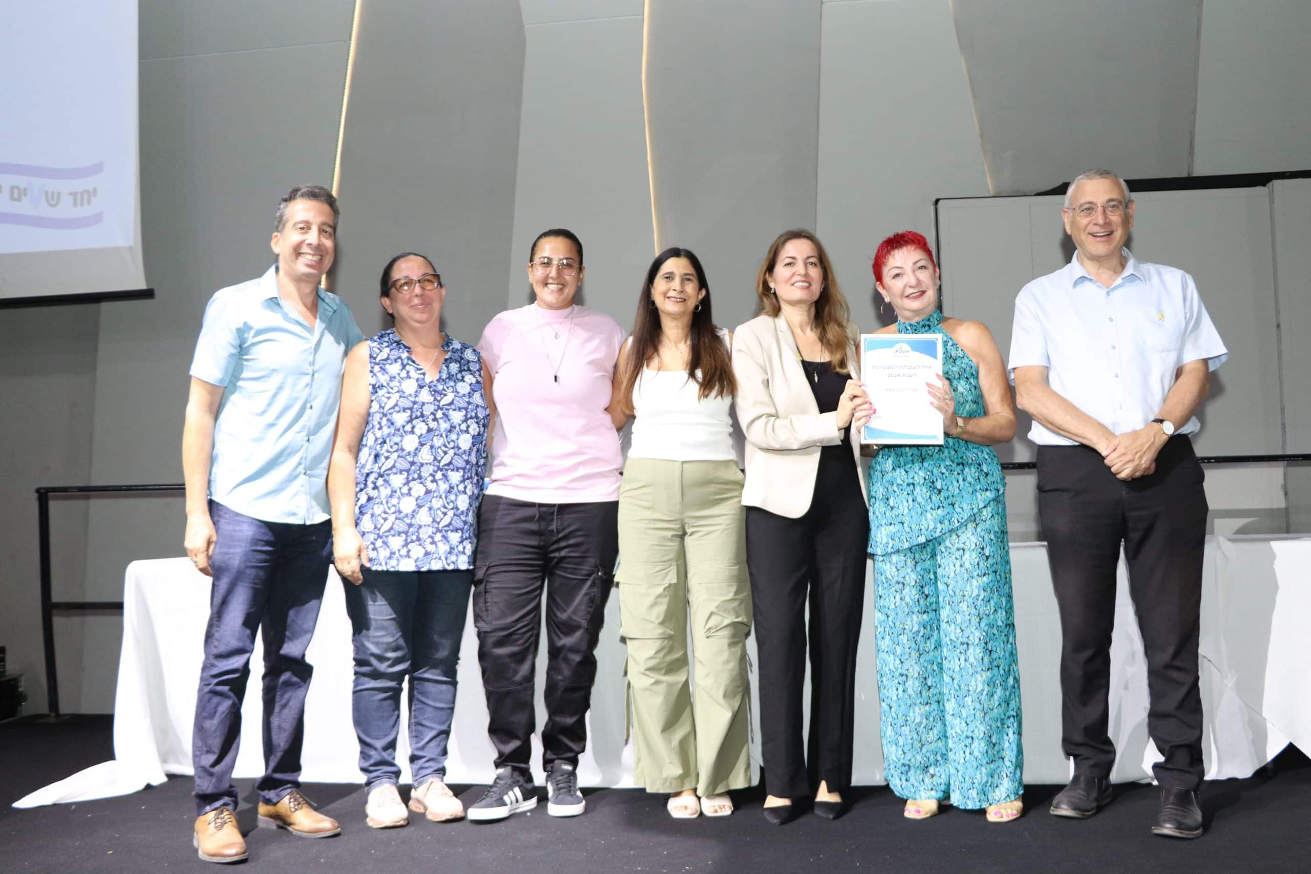 זו הייתה שנה מאתגרת במיוחד לעובדי ועובדות אקים, שבנוסף למשימות ולאתגרים היומיומיים, התווספו לעבודתם האתגרים שהמלחמה הביאה לפתחנו. במסגרת האירוע הוענקו תעודות הצטיינות ל-8 עובדות מצטיינות שנבחרו מכלל מסגרות אקים וכן לראשונה, הוענקה תעודת הוקרה מיוחדת לצוות מערך דיור אשקלון שהתמודד עם אתגרים מורכבים במיוחד, ובהם פינוי של הדיירים למסגרות דיור חלופיות במרכז הארץ בחודשי המלחמה הראשונים.